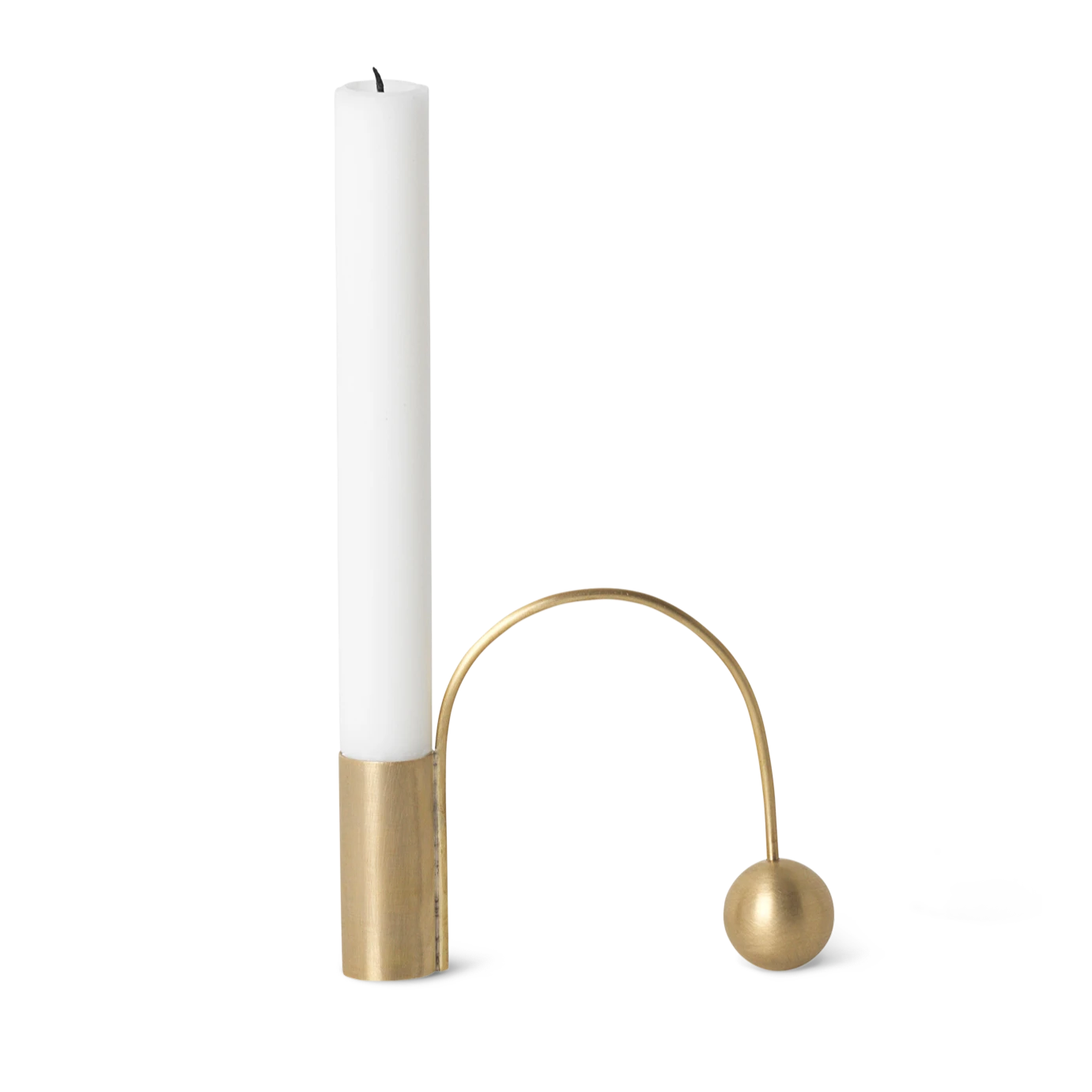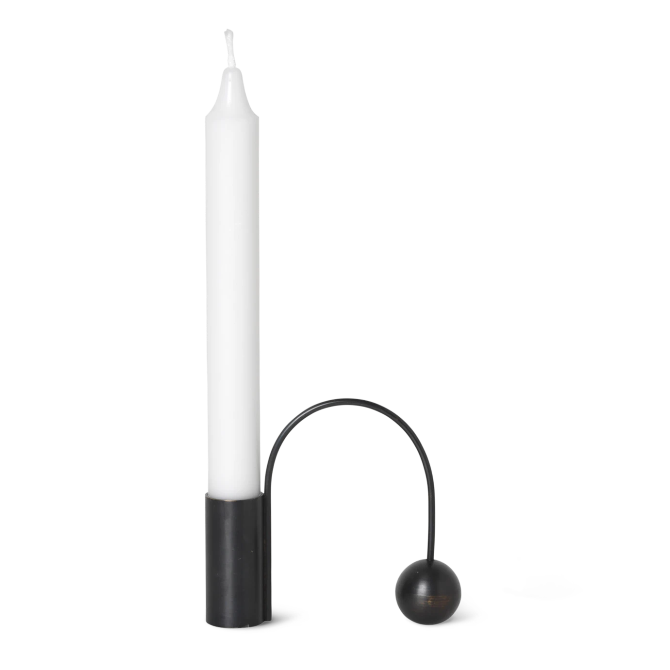 The Balance candle holder is an exercise in mastering the art of balance, each part counter-weighing the other to reach a moment of tranquil stillness. The geometrical shapes are both sculptural and functional, as the arch may be used as a handle to carry the candle holder.