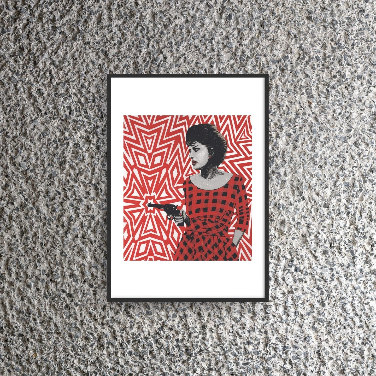 Limited edition silkscreen by Soheila Sokhanvari, as featured in Rebel Rebel, the first major UK commission by the Iranian artist, celebrating and commemorating feminist icons from pre-revolutionary Iran.