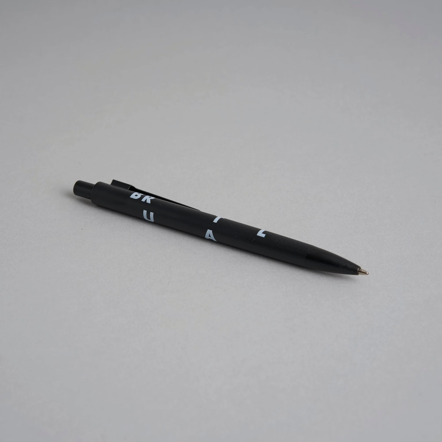 Matt, black pen with white ‘BRUTAL’ lettering.
