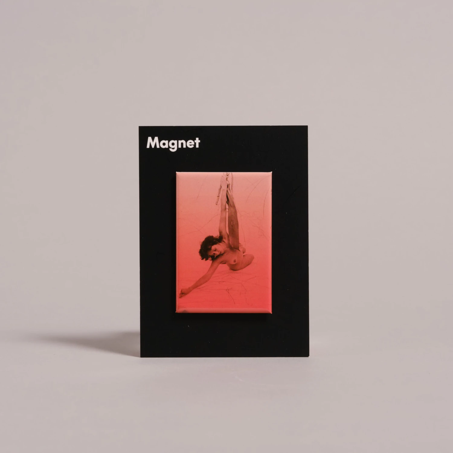 Fridge magnet featuring a photographic still taken during Carolee Schneemann’s performance piece, Up to and Including Her limits.