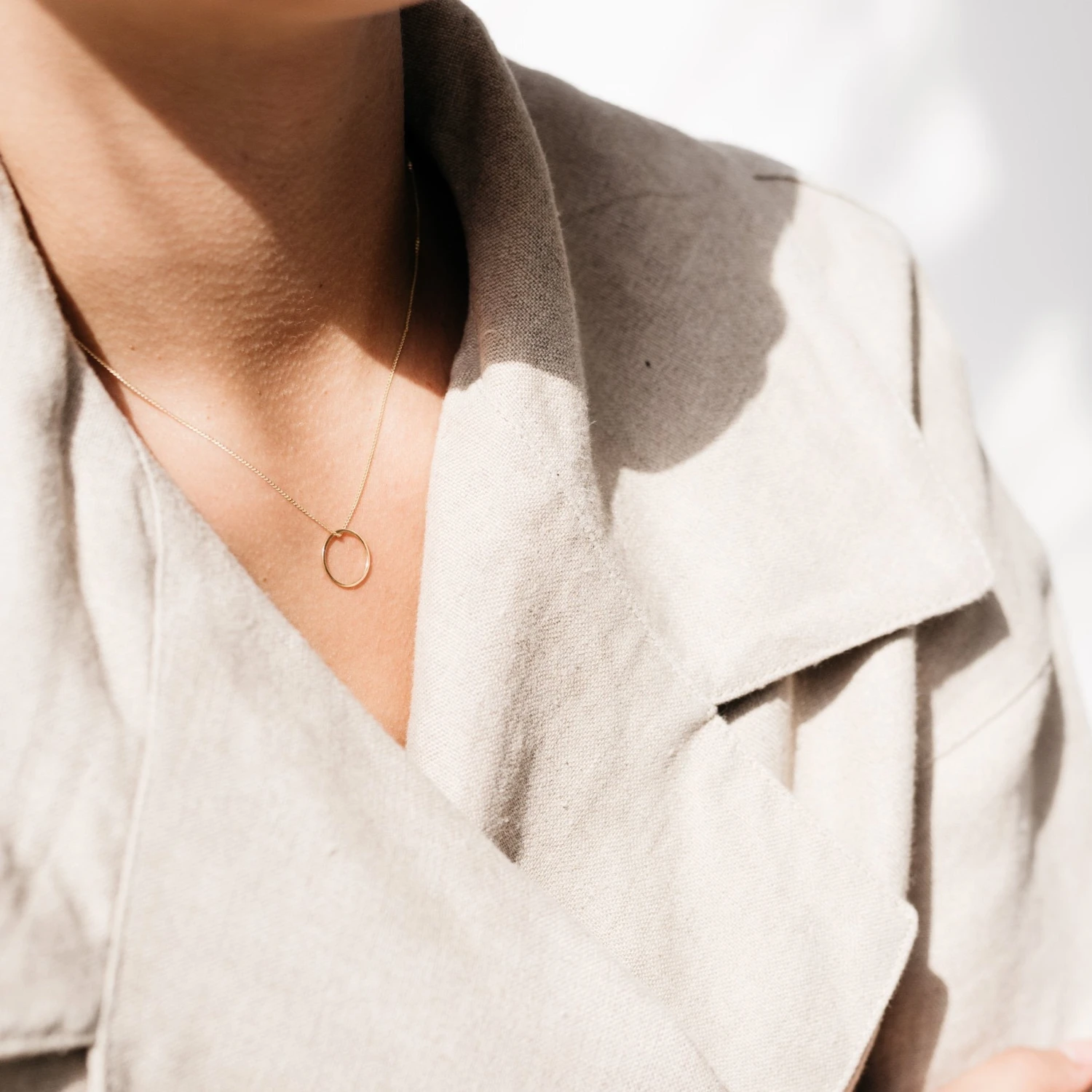 A beautifully delicate 9ct gold open circle pendant placed on a fine chain. A perfect everyday necklace that can be used to layer with other necklaces for a statement look.