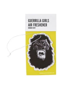 Third Drawer Down Studio in collaboration with the Guerrilla Girls present ‘Eliminate the Stench of Patriarchy’ Banana scented Air Freshener. Hang where stenches aren’t wanted and feel empowered with a roaring combination of Banana and Art!