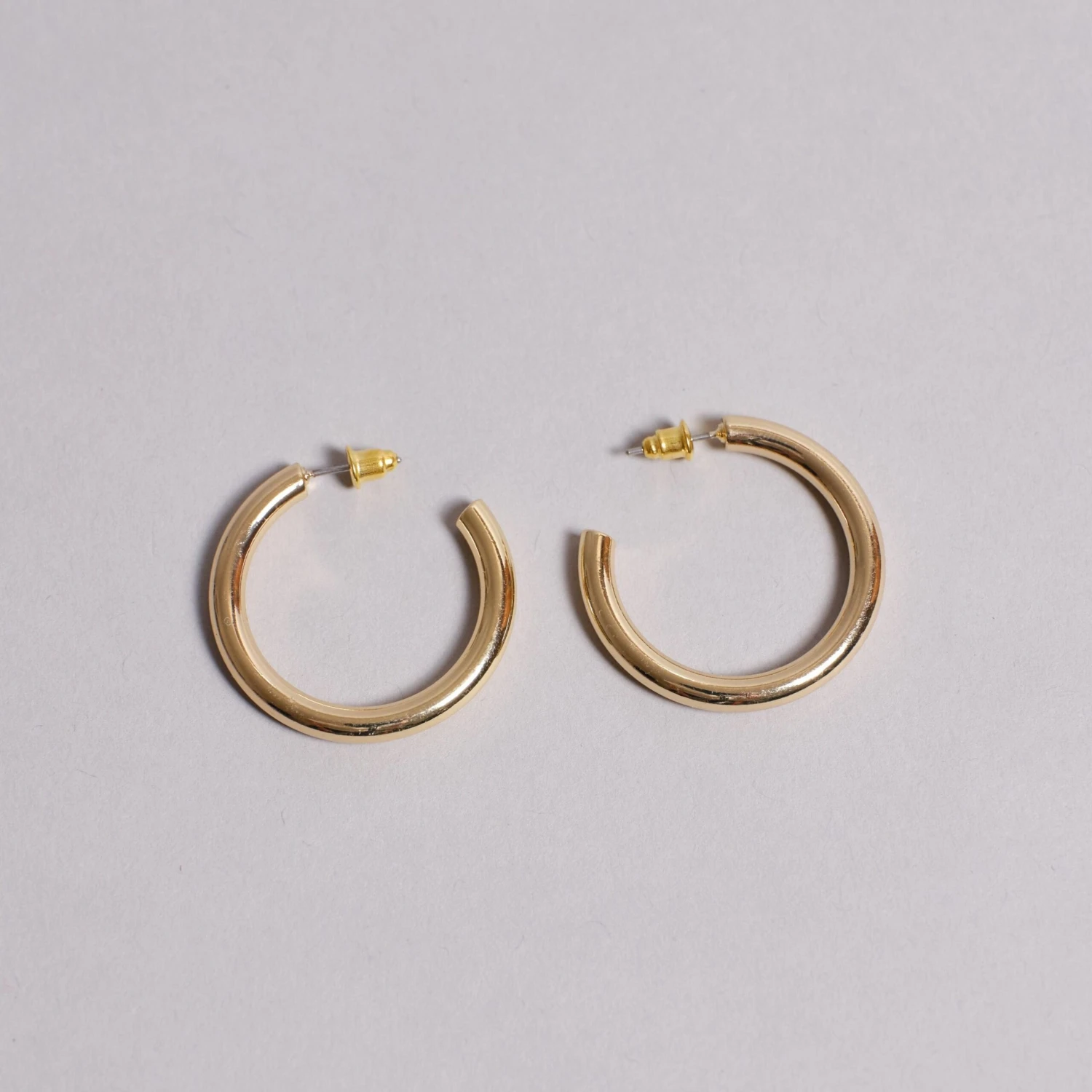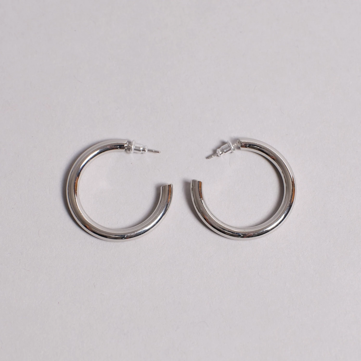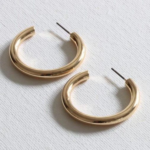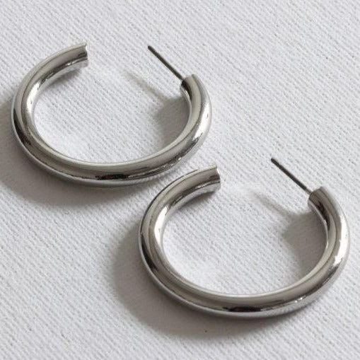 Thick hoops in silver or gold.