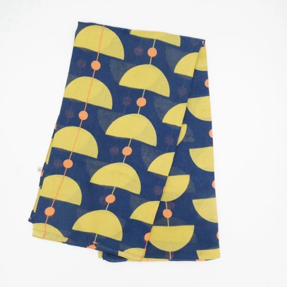 Navy blue scarf featuring a retro shapes repeat print