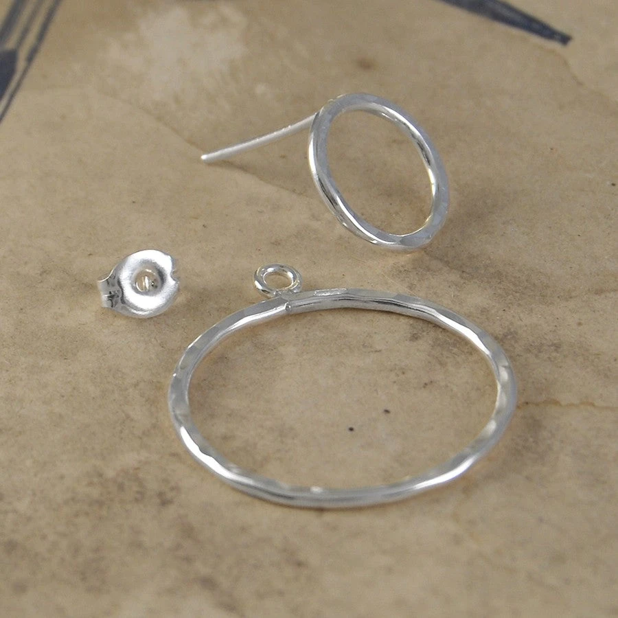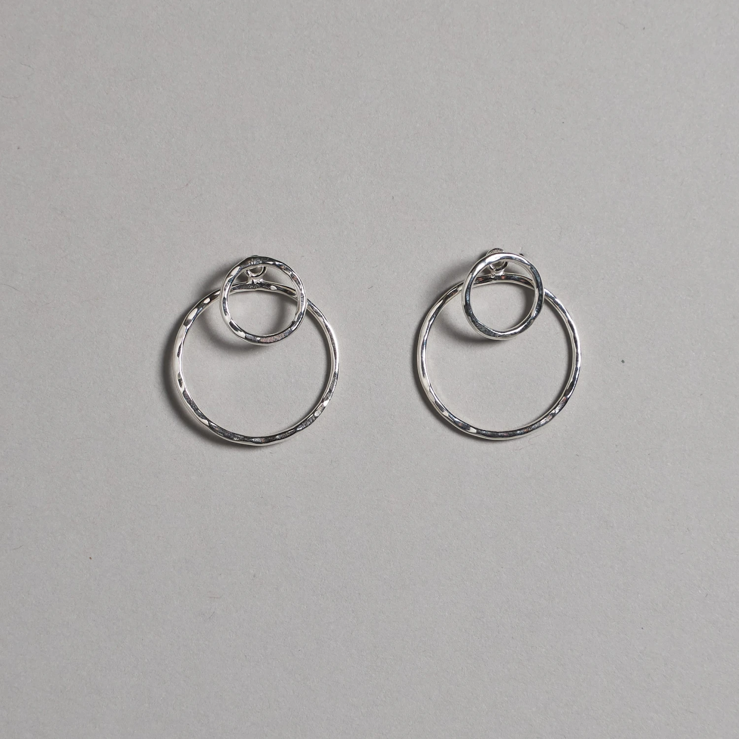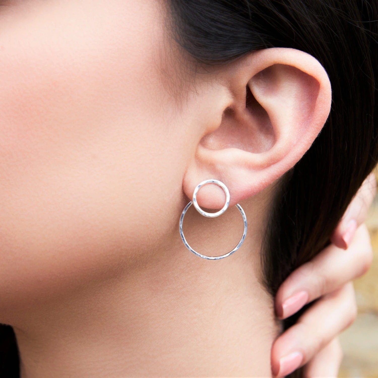 Sterling silver circular Hoop ear jackets slightly hammered for a more distinct and daring look.